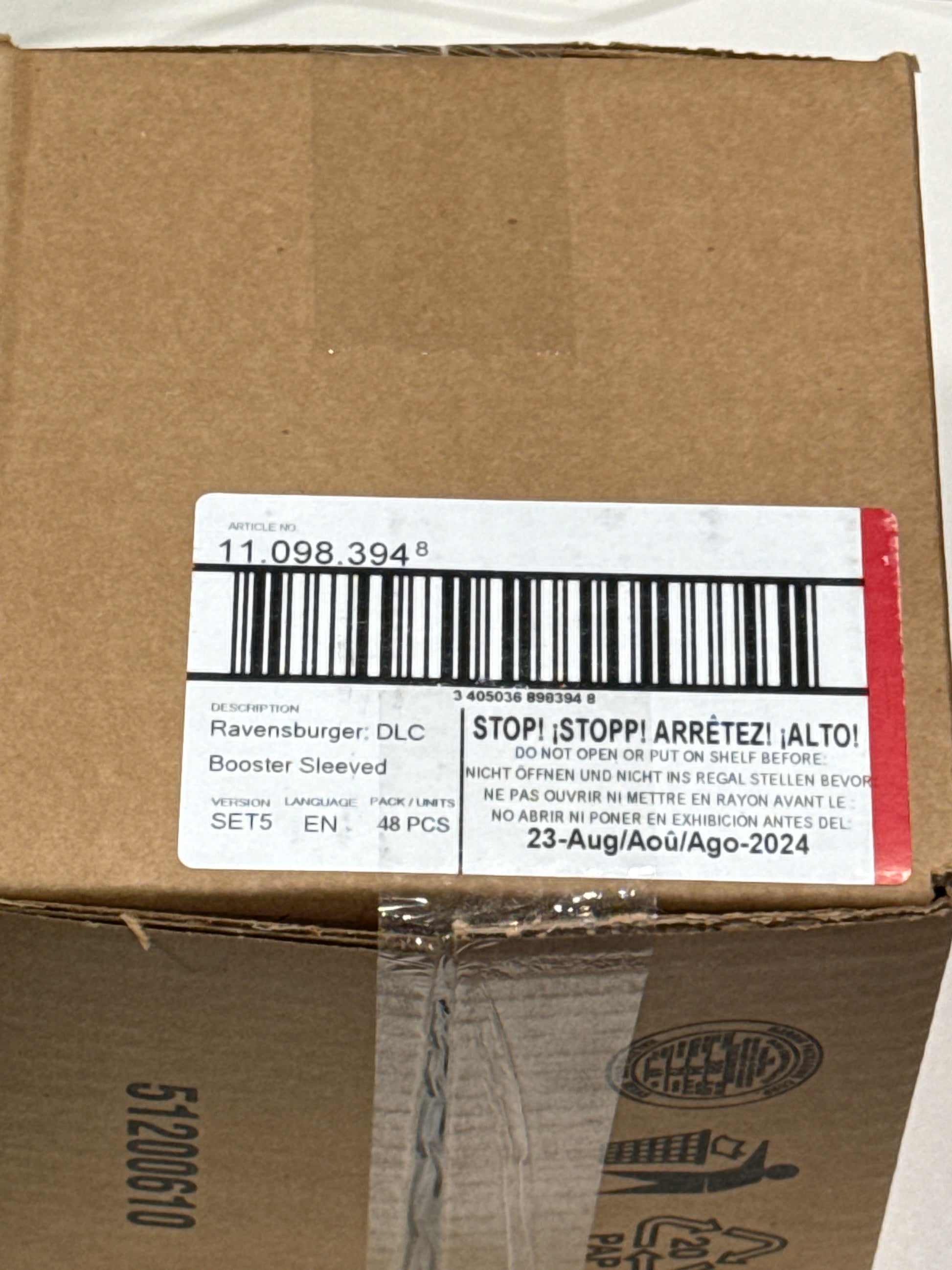 Brand new factory sealed case of Lorcana Set 5: Shimmering Skies Sleeved Booster packs. Contains 48 individually sleeved booster packs.