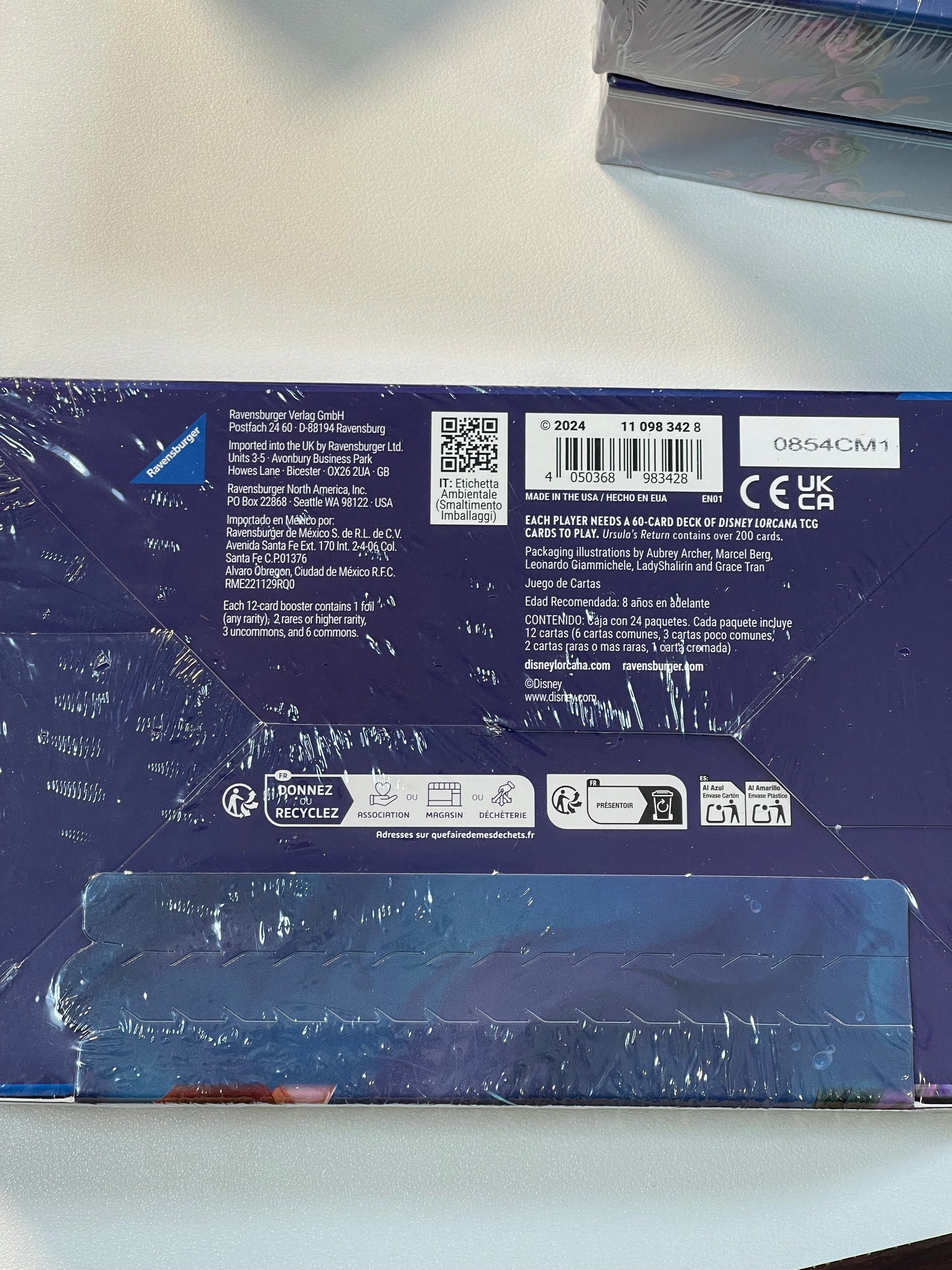 This is for 1 brand new factory sealed Disney Lorcana TCG Ursula’s Return booster box fresh from case. The booster box contains 24 packs each containing 12 cards.